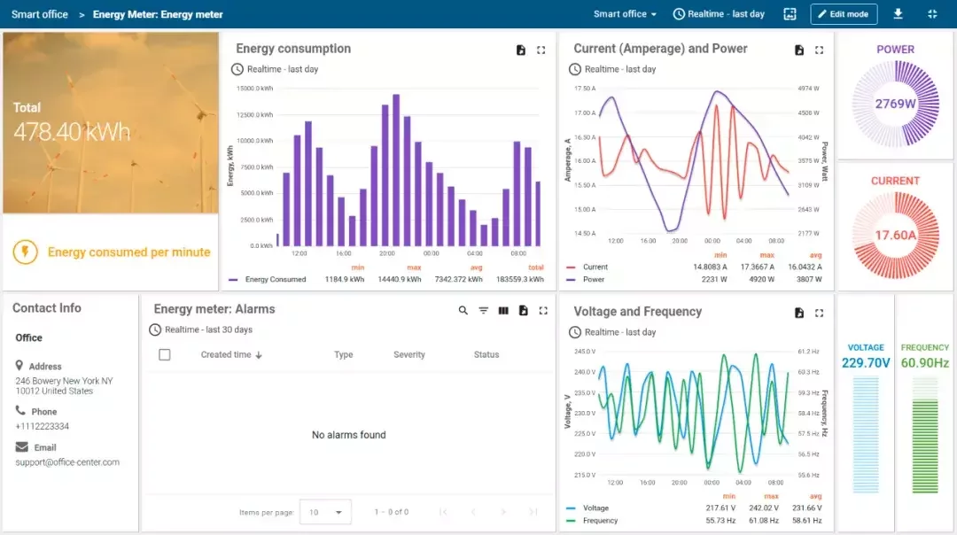 通过多种传感器监测和分析室内外环境,支持 NB-IoT、LoRaWAN、SigFOX、MQTT、CoAP、HTTP、LwM2M 等多种协议的数据采集。